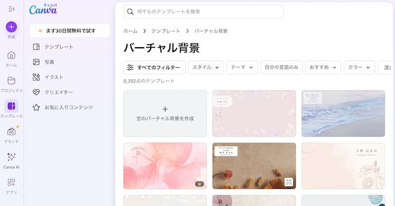 Canvaは、デザインツール一体型のサイトです。既存のテンプレートをそのまま使うことはもちろん、文字やロゴなどを追加して、オリジナルの背景を自作できます。編集途中のデータを保存するときは会員登録が必要です。