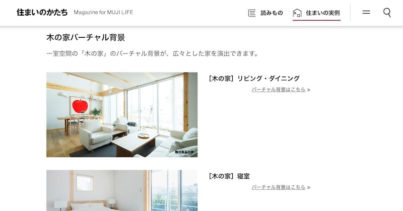 さまざまな企業からもバーチャル背景が提供されています。一例として無印良品の家のサイトでは、シンプルで清潔感のある部屋の画像がダウンロードできます。