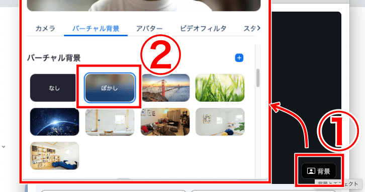 ミーティング開始時に背景ぼかしを設定する手順|パソコン