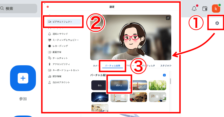 Zoom全体の設定で、バーチャル背景がオフになっている場合があります。以下の手順で確認しましょう。
