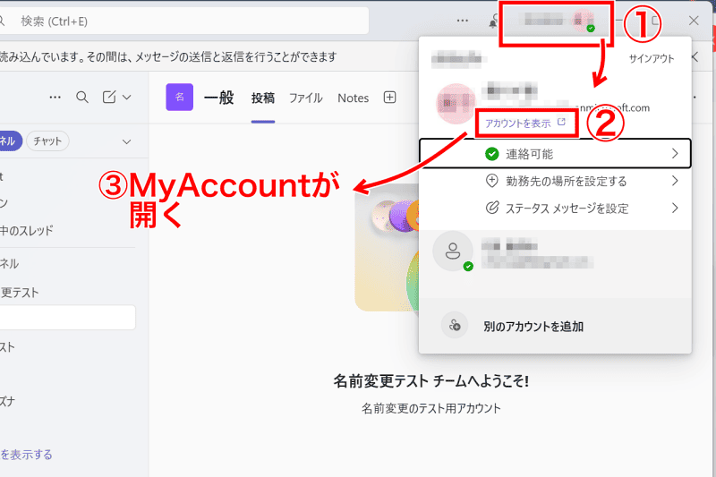 会社や学校から支給されたTeamsアカウントの場合、表示名の変更が管理者側で制限されているのが一般的です。自分のアカウントの設定は、以下の手順で確認できます。