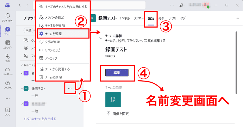 チームの所有者は、以下の手順でチーム名を変更できます。